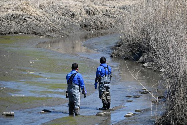 3月14日午後1時ごろ、武雄市の農業男性から武雄市朝日町甘久の高橋排水機場の樋門近くに、動けなくなっている海洋生物がいるとの連絡が佐賀県立宇宙科学館《ゆめぎんが》にありました。同館のスタッフ3人が現場に行ったところ、背びれがなく白いイルカであったことから、絶滅危惧種のスナメリが迷い込んだとみて、救出に当たりました。