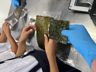 等級の違う板海苔を焼いて、等級や焼き具合によって味が違うことを体験します