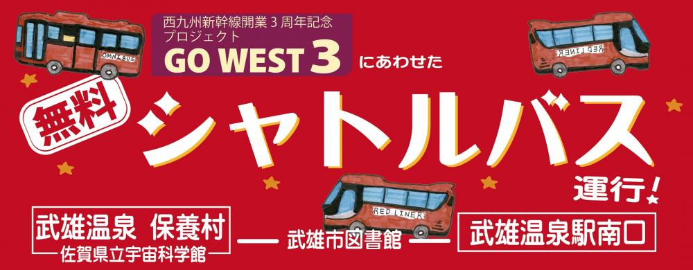 当日は武雄温泉駅南口ー武雄市図書館ー武雄温泉保養村(宇宙科学館)を結ぶシャトルバスを運行