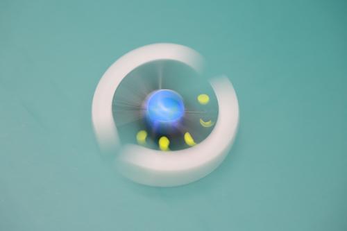 回すと写真のように地球の周りを月が満ち欠けして動いているように見えるコマを作ります。