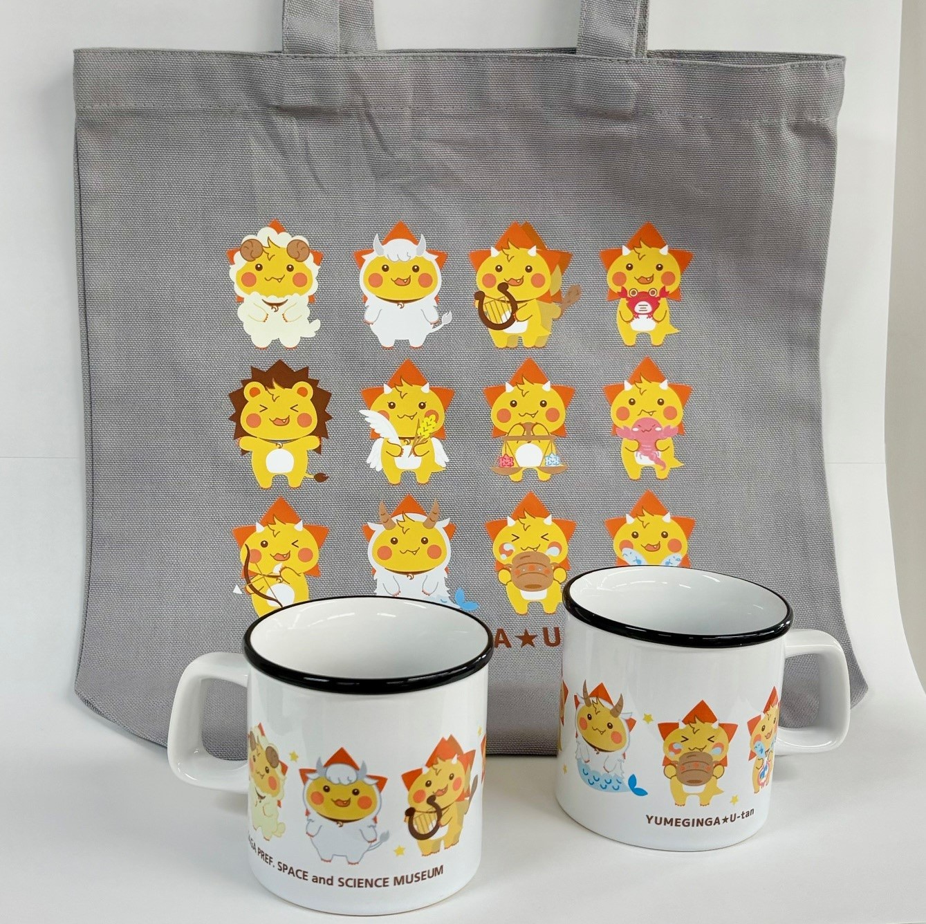 ミュージアムショップでは、宇宙や科学に関心や興味を持っていただけるような商品を取り扱っています。マスコットキャラクターの「ゆめぎんが★ウーたん」グッズや、全118種類の元素記号マグネット、星空と科学館をデザインしたオリジナルグッズも販売しております。